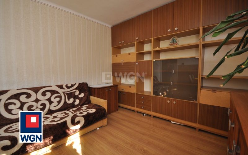 Bardzo silnym punktem mieszkania jest widny pokój dzienny (~14,2 m2) z miejscem na wygodną część wypoczynkową, stół gościnny, kanapę i komodę. W kuchni (~4,10 m2) znajduje się praktyczna zabudowa kuchenna zawierająca okap, dwukomorowy zlewozmywak oraz kuchenka z piekarnikiem i lodówka. Dodatkowo ustawny pokój (~8,90 m2) do zaaranżowania jako pokój dziecięcy, młodzieżowy lub sypialnia. W łazience (~3 m2) znajduje się wanna prostokątna, pralka oraz miska kompakt. Ściany i podłogi wykończone są higienicznymi płytkami.
